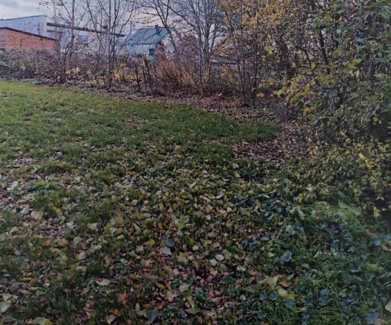 Działka o kształcie wydłużonego prostokąta i spadkiem terenu w kierunku zachodnim. Teren nieruchomości porośnięty jest trawą, drzewami, zakrzaczony. Obszar nieogrodzony.