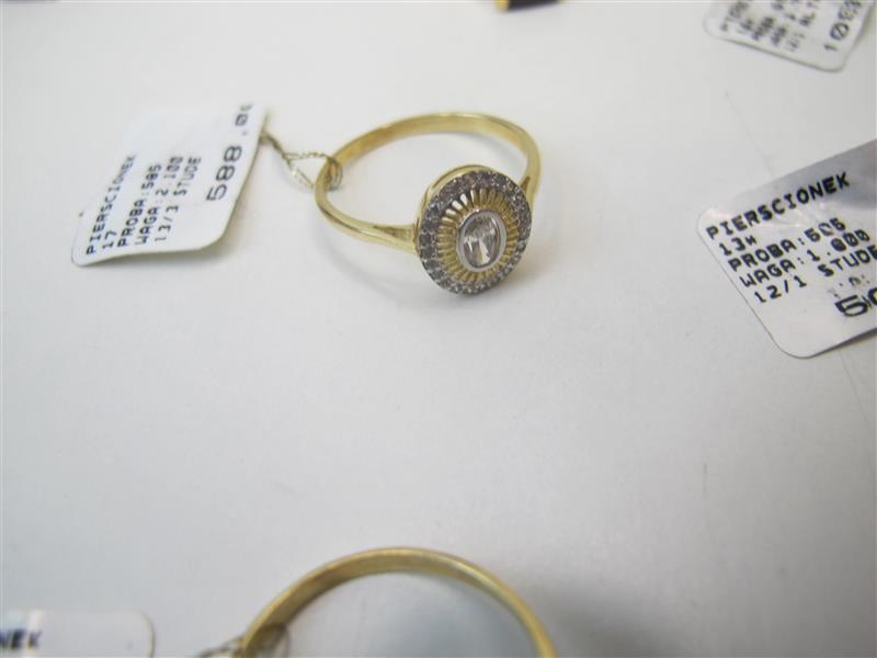 | 24 | Pierścionek złoty z kamieniami jubilerskimi ozdobnymi, próba 585, waga 3,1; A830674 | 930,00 zł 756,10 zł netto + 23% VAT | 697,50 zł* | 35,00 zł |