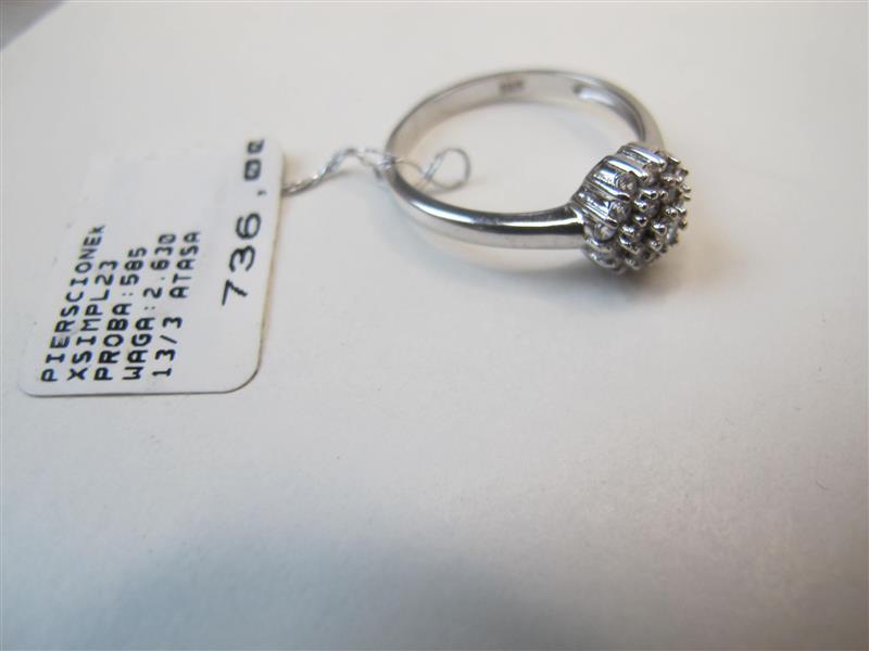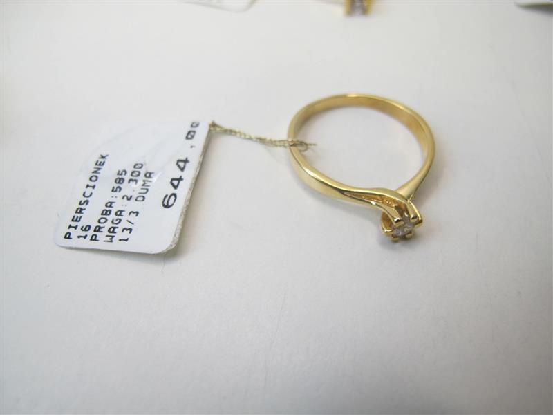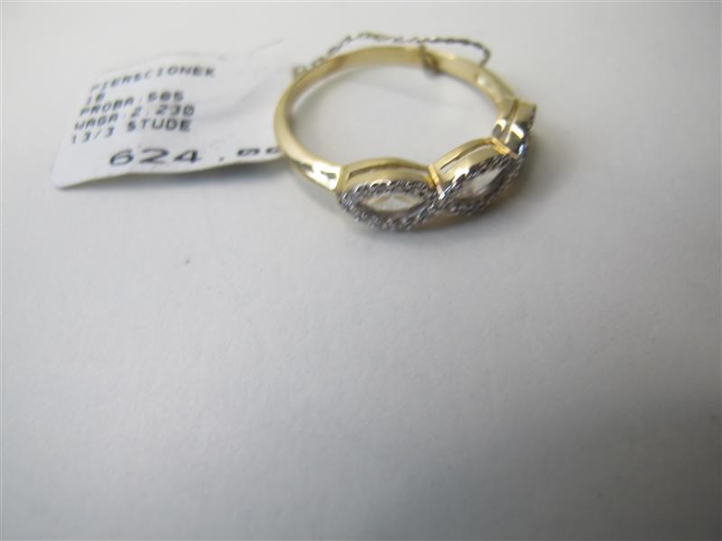 | 15 | Pierscionek złoty z kamieniami jubilerskimi ozdobnymi, próba 585, waga 3,4; A733371 | 1 020,00 zł 829,27 zł netto + 23% VAT | 765,00 zł* | 39,00 zł |