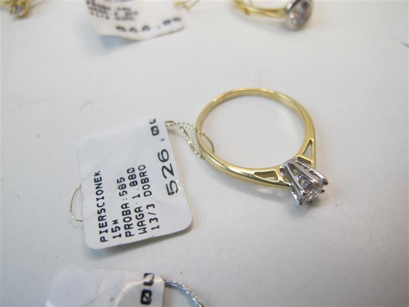 | 14 | Pierścionek złoty z kamieniami jubilerskimi ozdobnymi, próba 585, waga 2,99; A766672 | 1 050,00 zł 853,66 zł netto + 23% VAT | 787,50 zł* | 40,00 zł |