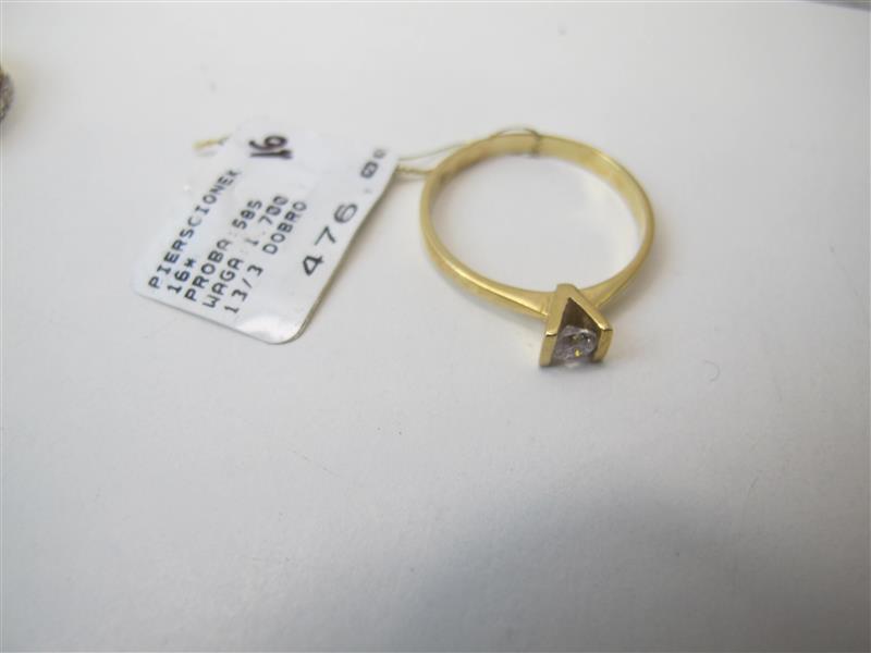 | 60 | Pierścionek złoty z kamieniami jubilerskimi ozdobnymi, próba 585, waga 3,3; A808929 | 1 260,00 zł 1024,39 zł netto + 23% VAT | 945,00 zł* | 48,00 zł |