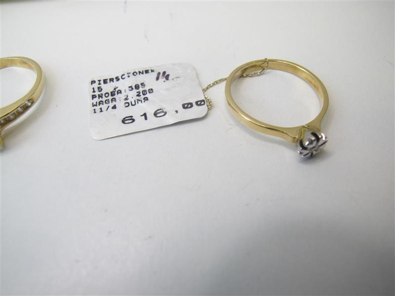 | 9 | PIerścionek złoty z kamieniami jubilerskimi ozdobnymi, próba 585, waga 4,34; A433804 | 1 320,00 zł 1073,17 zł netto + 23% VAT | 990,00 zł* | 50,00 zł |