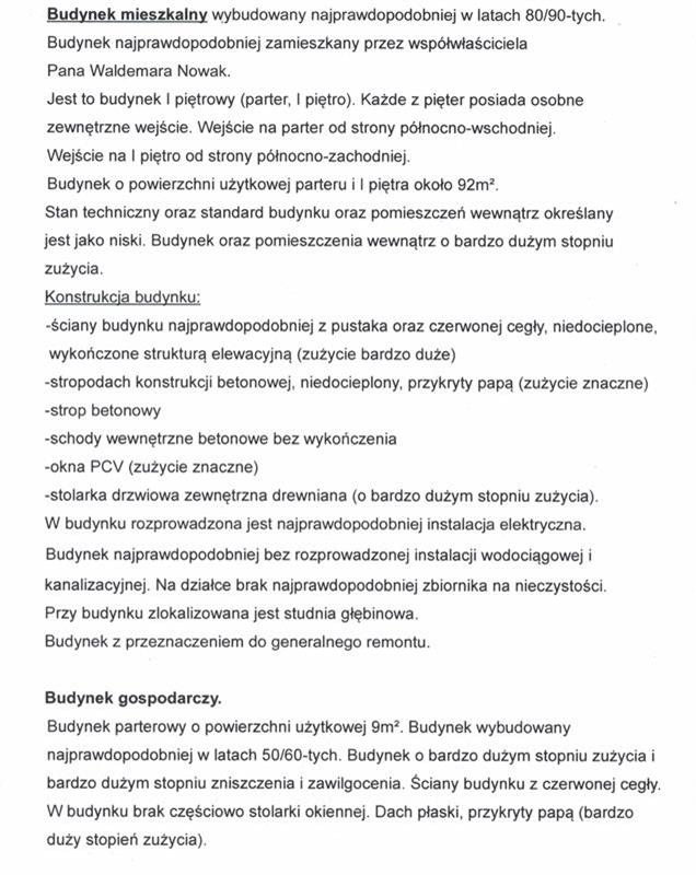 W ciągu dwóch tygodni przed licytacją wolno oglądać wyżej wymienioną nieruchomość w dni powszednie od godz. 08:00 do godz. 16:00. W systemie teleinformatycznym udostępnia się natomiast protokół opisu i oszacowania.