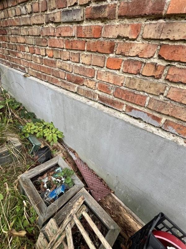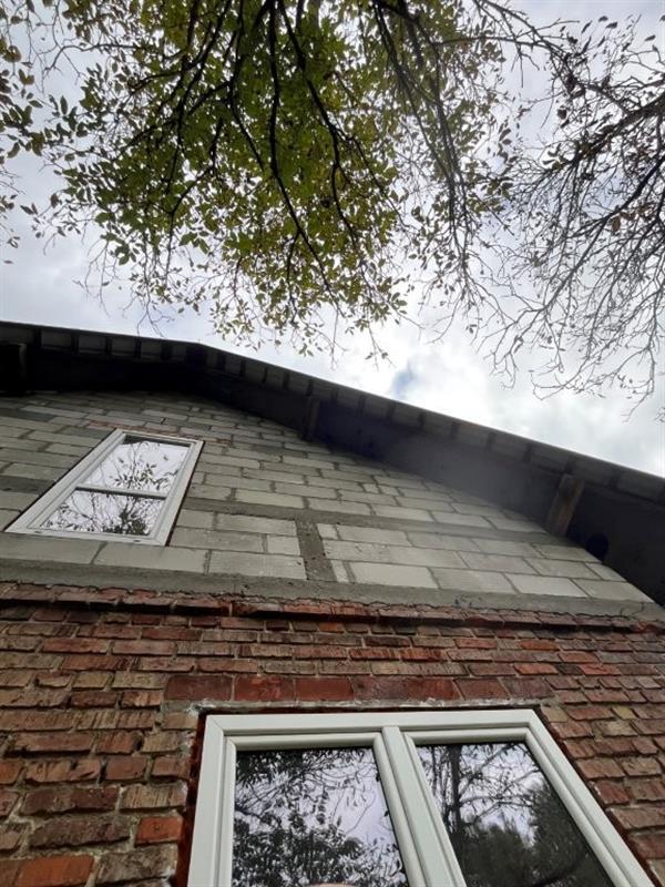 okładziny zewnętrzne – brak (widoczne jedynie zaizolowanie warstwy fundamentowej.