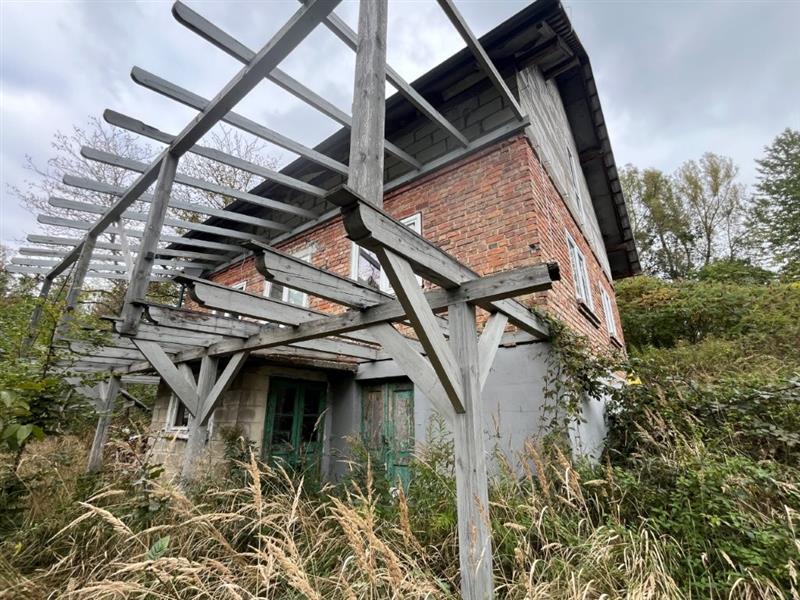 Przedmiotowy dom mieszkalny to budynek jednorodzinny, podpiwniczony (w części z uwagi na układ terenu to tzw. niski parter), parterowy, z poddaszem prawdopodobnie przerobionym na użytkowe, kryty dachem dwuspadowym, wykonany w technologii murowanej prawdopodobnie w latach 70-tych XXw. Wg ewidencji gruntów wyposażony jest w przyłącze do sieci energetycznej (brak informacji o innych przyłączach). Na terenie posesji znajduje się również studnia głębinowa, lecz bez uwidocznionego przyłącza.