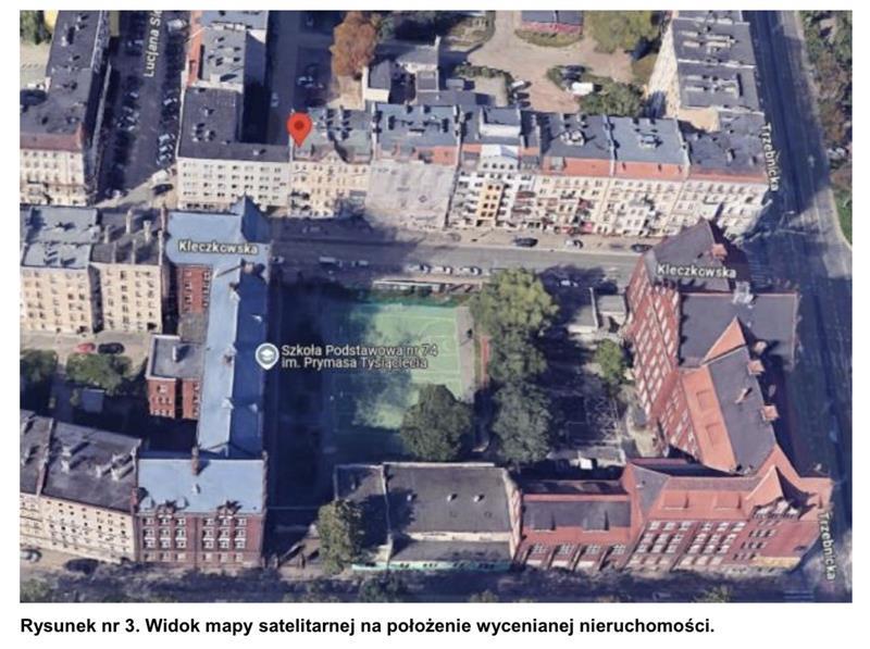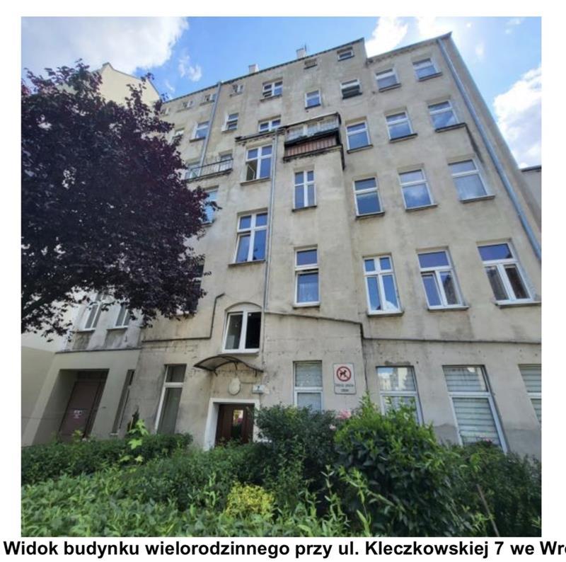 Przedmiotowy lokal mieszkalny nr 12 jest jednym z kilkunastu lokali znajdujących się w budynku mieszkalnym wielolokalowym przy ul. Kleczkowskiej 7. Położony jest on 4 kondygnacji budynku. Zgodnie z zapisami w księdze wieczystej WR1K/00266630/7 lokal składa się z 1 pokoju, kuchni, wc i przedpokoju. Stan ten nie został potwierdzony podczas wizji lokalnej, gdyż brak było wstępu do przedmiotowego lokalu. Lokal w pełni rozkładowy, bez pokoi przechodnich z dobrym doświetleniem światłem dziennym. Do lokalu wchodzi się z wewnętrznej klatki schodowej.