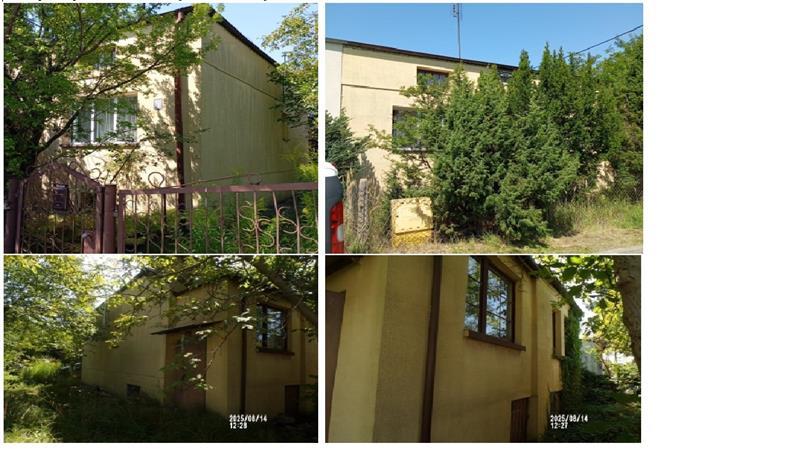 Stolarka drzwiowa stara, zniszczona. Okna na parterze z PCV, okna na poddaszu i w piwnicy drewniane ,starego typu. W podpiwniczeniu budynku znajdują się pomieszczenia gospodarcze. Budynek podłączony do sieci wodociągowej, elektrycznej, gazowej i kanalizacyjnej. Ogrzewanie w budynku gazowe lecz piec gazowy jest zdjęty. Obecnie wszystkie media w budynku są odłączone. Wzdłuż północno – wschodniej granicy działki posadowiony jest parterowy, murowany budynek mieszkalny o powierzchni zabudowy 83 m2 i powierzchni użytkowej ok. 50 m2. Budynek murowany z cegły pełnej, dach konstrukcji drewnianej. Budynek nadaje się do wyburzenia. Z mniejszym budynkiem mieszkalnym zblokowany jest parterowy budynek gospodarczy, w którym znajdują się garaż dwustanowiskowy oraz dwa pomieszczenia gospodarcze. Budynek murowany bez podpiwniczenia posiada 49 m2 powierzchni zabudowy i ok. 45 m2 powierzchni użytkowej. Na nieruchomości posadowiony jest także parterowy, budynek gospodarczy o powierzchni zabudowy 50 m2 i powierzchni użytkowej ok. 45 m2. Budynek zbudowany częściowo z drewna, częściowo z zespawanych, starych grzejników. Dach pokryty płytami falistymi. Budynek do rozbiórki.
