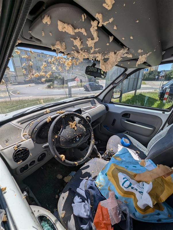| 2 | RENAULT KANGOO, 2002 r., nr rej. CG9552C, VIN: VF1FC09AF28075933, hak, kol. biały, brak szyby w drzwiach przednich lewych, wnętrze pojazdu, zabrudzone : pianką montażową, data nast. bad.: 15.03.2026 00:00:00 | 1 | 1 000,00 zł | 750,00 zł | 38,00 zł |