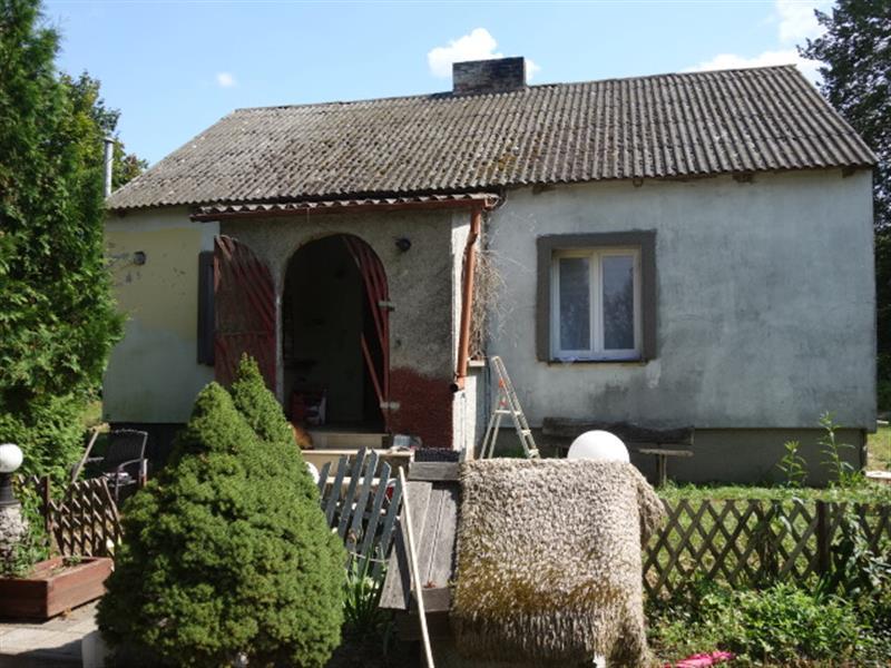 1. dom mieszkalny, z roku 1950, częściowo remontowany, jednokondygnacyjny z poddaszem gospodarczym, o pow. zab. 82,00 m2 , pow. uż 69,92 m2 (wg przelicznika Pz/Pu). Budynek o konstrukcji tradycyjnej: Fundamenty nie dokonano odkrywek, ściany zewnętrzne warstwowe: z pustaków żużlowych ocieplone styropianem, elewacji docelowej brak, schody zewnętrzne betonowe obłożone terakotą mrozoodporną. Dach o konstrukcji drewnianej, dwuspadowy, pokryty eternitem, orynnowania i rur spustowych brak. Okna PCV, na strychu drewniane. Media: energia elektryczna, sieć wodociągowa, szambo ekologiczne