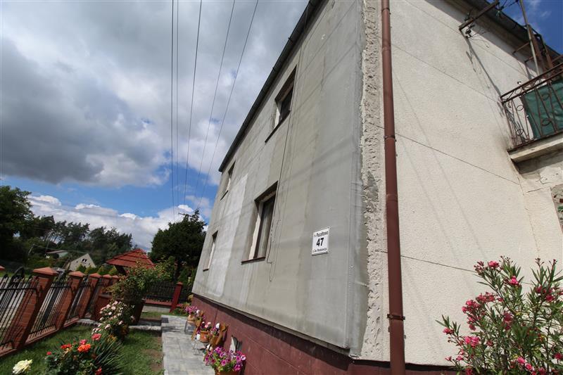 Przedmiotem licytacji jest wyłącznie udział 1/2 w nieruchomość gruntowej - działka nr 51/1 o pow. 0,34 ha zabudowanej piętrowym budynkiem mieszkalnym oraz budynkiem gospodarczym. Nieruchomość zlokalizowana jest we wsi Pacółtowo, ul. Gen. Waraksiewicza 47, powiat nowomiejski, województwo warmińsko-mazurskie. Sąsiedztwo stanowi zabudowa mieszkaniowa jednorodzinna. Do centrum Nowego Miasta Lubawskiego jest około 2,5 km. Posiada bezpośredni dostęp do drogi publicznej o nawierzchni asfaltowej. Ma kształt zbliżony do prostokąta i jest ogrodzona - od strony ulicy słupki i cokół z cegły klinkierowej, przęsła metalowe. Brama konstrukcji stalowej, sztachety drewniane. Teren jest w części zagospodarowany z urządzoną zielenią. Na nieruchomości zlokalizowany jest: wolnostojący budynek mieszkalny, piętrowy, podpiwniczony, wybudowany w 1979. Ławy fundamentowe żelbetowe a ściany nadziemia betonowe lane, nieocieplone, ściany nadziemia - murowane z bloczków gazobetonowych, warstwowe z przerwą powietrzną, ocieplone styropianem gr 5 cm. Stropy nad parterem i piwnicą żelbetowe, dach - konstrukcji drewnianej, kopertowy pokryty papą, rynny i rury spustowe blacha ocynkowana, stolarka okienna PCV, w piwnicy okna drewniane. Stolarka drzwiowa drewniana, podłogi deski podłogowe i płytki, ściany na parterze wykończone gładzią, a w piwnicy na podłodze posadzka betonowa. Płytki ceramiczne w łazienkach zaś łazienka na parterze wyposażona w sedes, kabinę prysznicową i umywalkę - łazienka po remoncie. Łazienka na piętrze wyposażona w sedes, umywalkę i kabinę prysznicową - wyposażenie z lat 90-tych. Schody zewnętrzne betonowe obłożone płytkami klinkierowymi, schody wewnętrzne betonowe i lastriko. Instalacje: elektryczna, wodociągowa z sieci miejskiej, kanalizacja z sieci kanalizacyjnej, c.o. z piecem na węgiel, grzejniki purmo i aluminiowe. Pow. zabudowy 112m2, pow. użytkowa 154m2. Na parterze 3 pokoje, kuchnia, łazienka z wc i komunikacja, piętro - 3 pokoje, kuchnia, łazienka i komunikacja. Dodatkowo pomieszczenie piwniczne o pow 76,25 m2 - korytarz, spiżarnia, kotłownia, skład opału, piwnica. Stan techniczny budynku średni. Budynek gospodarczy wolnostojący, w części murowany a w części drewniany - dach w tej części zarywa się, wybudowany w latach 70-tych XX wieku. Ławy fundamentowe żelbetowe, ściany nadziemia murowane z bloczków gazobetonowych o gr 1 pustaka, strop betonowy lany, dach 2 spadowy konstrukcji drewnianej kryty deską i papą. Okna PCV, stolarka drzwiowa drewniana, wrota garażowe z blachy trapezowej. Posadzki betonowe a w pomieszczeniu biurowym i w 1 pomieszczeniu magazynowym posadzka wykończona płytkami. Ściany wewnętrzne garażu oraz biurze otynkowane, pozostałe bez tynku. Rynny z blachy ocynkowanej, malowane w części uszkodzone. Instalacje: elektryczna, wodna z sieci miejskiej, kanalizacyjna z sieci kanalizacyjnej, c.o. z kotłowni usytuowanej w piwnicy budynku mieszkalnego, grzejniki purmo w pom. biurowym oraz żeliwne w garażu. Pow. zabudowy 165m2 a użytkowa 83,67 m2. Stan techniczny średni.